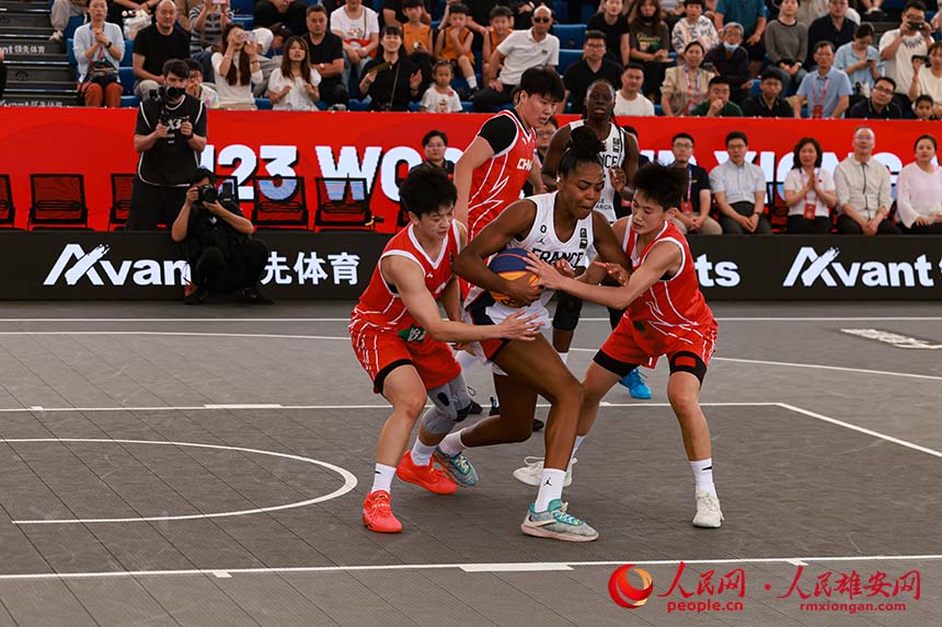 中國女隊隊員同法國隊比賽現(xiàn)場。人民網(wǎng) 席彪攝