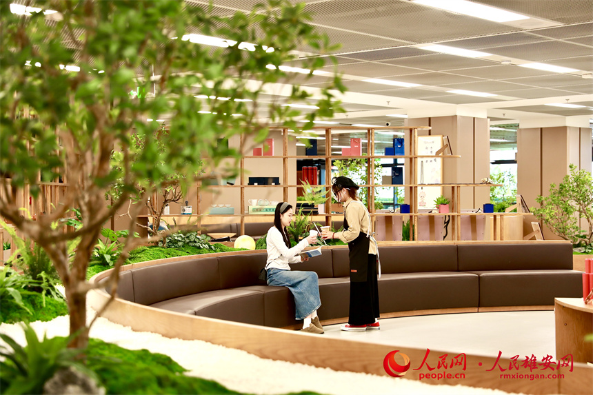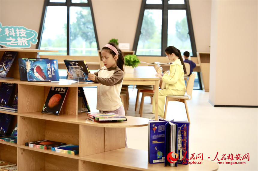 雄安圖書館正式開放,吸引居民前來游覽、閱讀。人民網記者 宋燁文攝